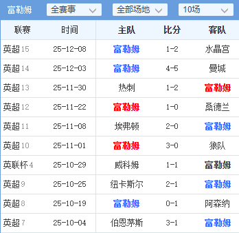 · 关键数据: 15场失30球,防守联赛第二差;主场对富勒姆近29场不败。
